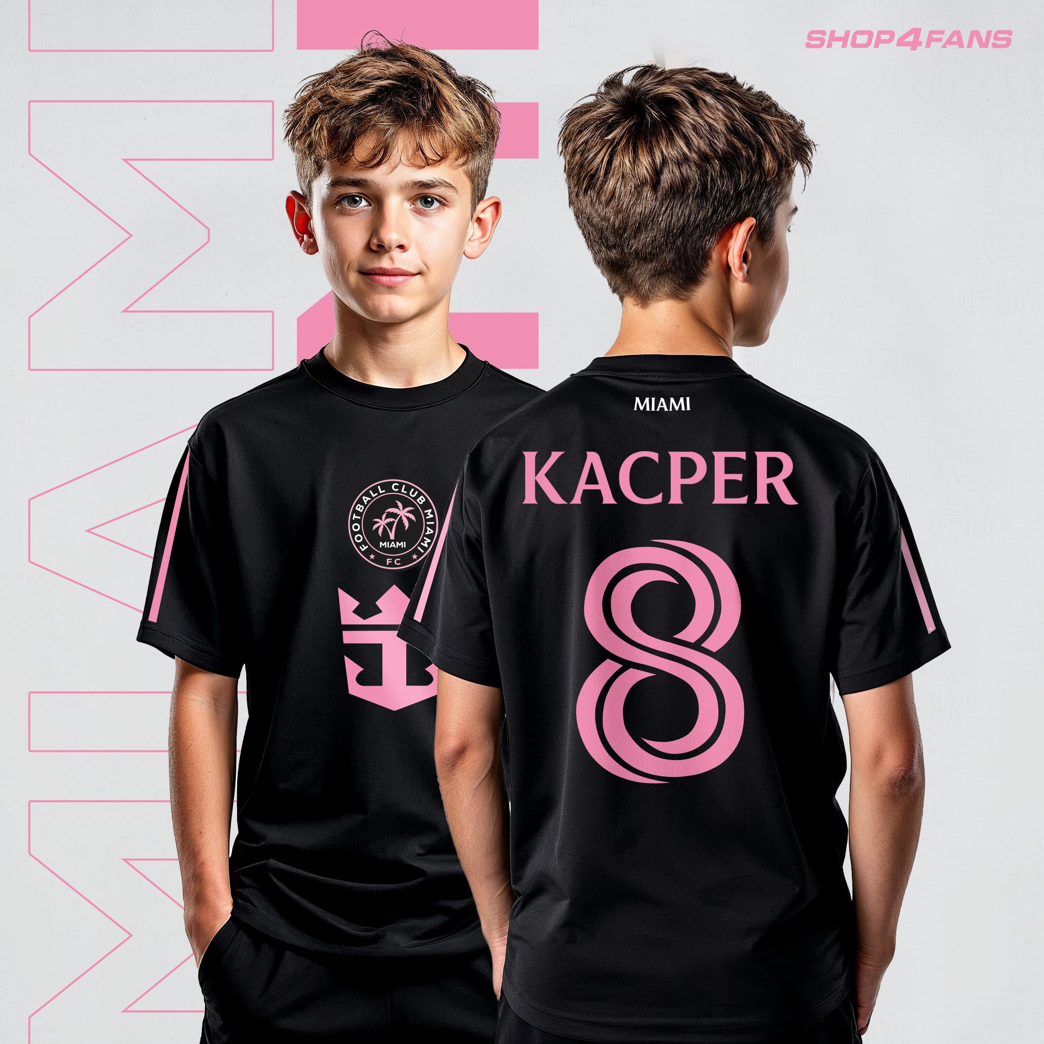 Czarna Koszulka Inter Miami dla dzieci z własnym nadrukiem, nowość.